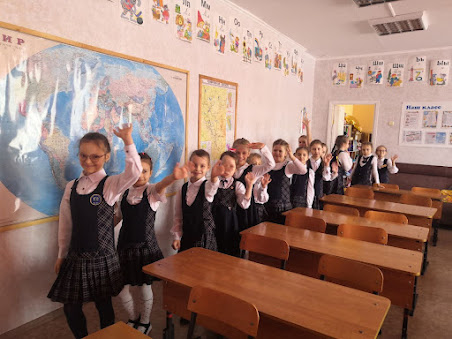 Наш праздник в классе. Мальчики поздравляют девочек.